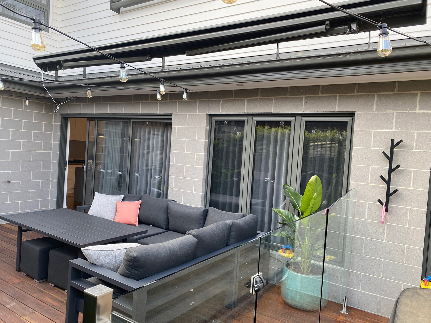 Also known as verandah blinds, a retractable awning is a system installed for use on horizontal or inclined structures. A retractable awning is an ideal shading choice for glass roof structures as it can prevent your room from heating up and reduce the need for air conditioning, helping you save on energy usage costs.