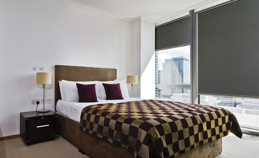 The Ziptrak® Interior track guided system secures your chosen blind material within vertical tracks, preventing light from entering through gaps and creating total light blockout. Ziptrak® Interior offers superior insulation, as it keeps an air pocket between the blind and the glass which significantly enhances the insulation performance. Materials are available with a reflective backing in order to bounce direct sunlight back outside.
