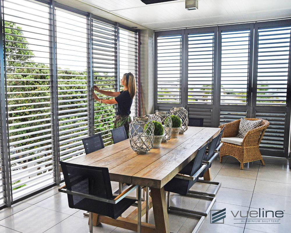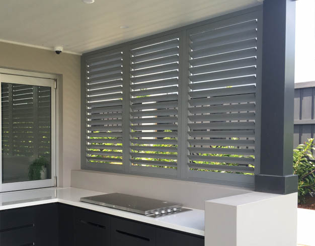 Outdoor aluminium plantation shutters are versatile as you can have them completely or partially open to let in the breeze and views or you can completely shut them, creating a space that’s better insulated during the winter and summer months.